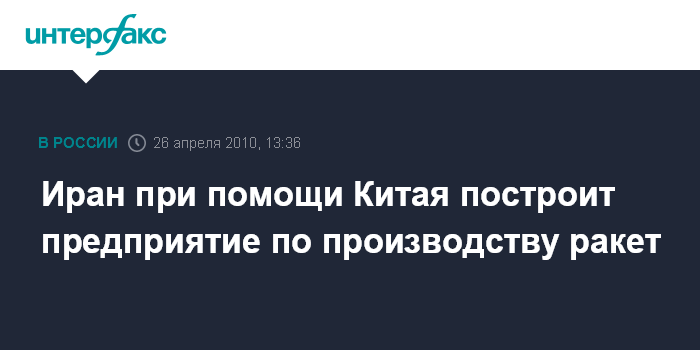 Вашингтон/Москва. 26 апреля. INTERFAX.RU - Китай официально открыл в Иране предприятие по производству ракет, сообщает американский журнал Jane‘s Defence Weekly.