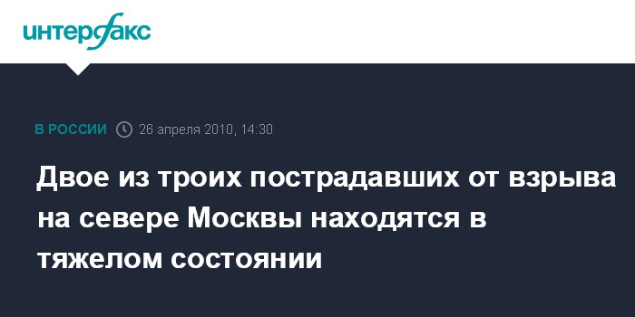 Двое из троих пострадавших от взрыва на севере Москвы находятся в тяжелом состоянии