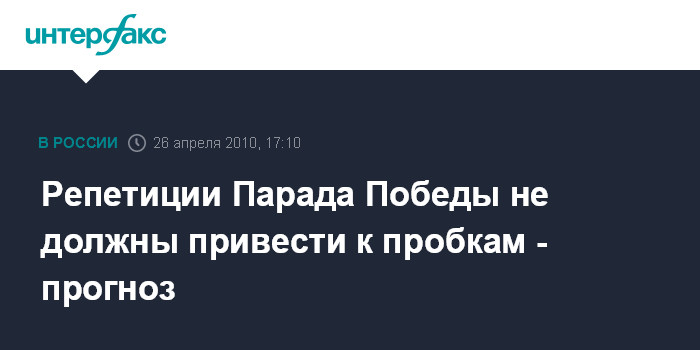 Москва. 26 апреля. INTERFAX.RU – Репетиции Парада Победы не должны осложнить дорожную ситуацию, прогнозирует аналитический центр сервиса "Яндекс.Пробки".