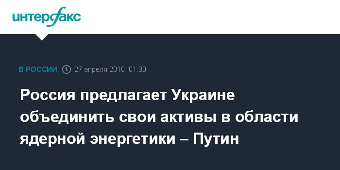 Киев. 27 апреля. ИНТЕРФАКС - Москва выступает с предложением для Киева об объединении своих активов в ядерной энергетике.
