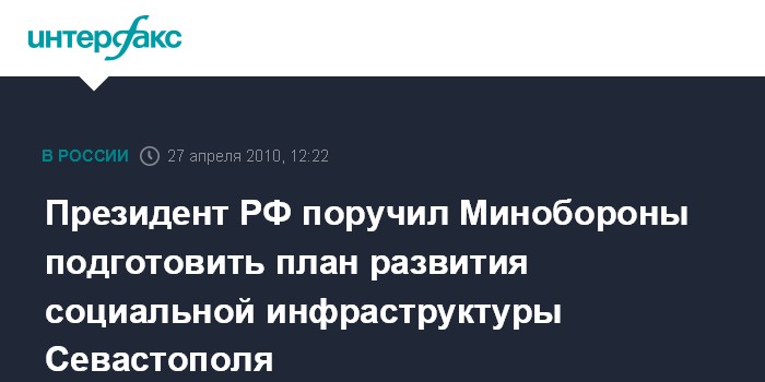 Президент РФ поручил Минобороны подготовить план развития социальной инфраструктуры Севастополя