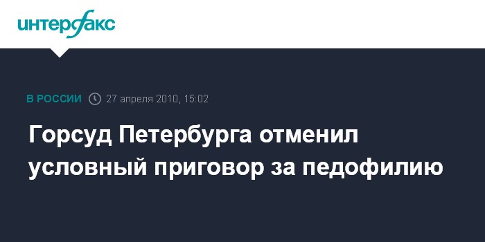 Москва. 27 апреля. INTERFAX.RU - Санкт-Петербургский городской суд отменил вынесенный ранее условный приговор за педофилию Алексею Слепцову, передал корреспондент "Интерфакса". Суд передал дело на новое рассмотрение в Дзержинский суд Петербурга.