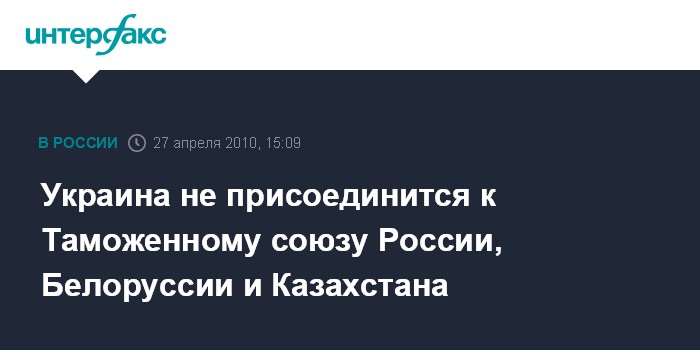 Украина не присоединится к Таможенному союзу России, Белоруссии и Казахстана