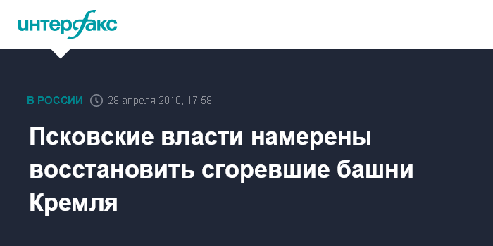 Псковские власти намерены восстановить сгоревшие башни Кремля