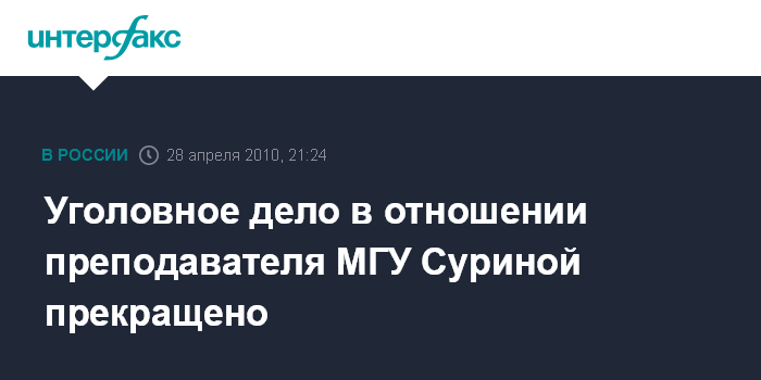 Уголовное дело в отношении преподавателя МГУ Суриной прекращено
