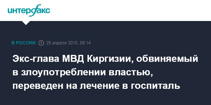 Экс-глава МВД Киргизии, обвиняемый в злоупотреблении властью, переведен на лечение в госпиталь