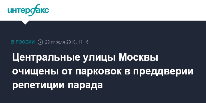 Москва. 29 апреля. INTERFAX.RU – Тверская улица и Новый Арбат в Москве освобождены от припаркованного транспорта на всем своем протяжении в связи с предстоящей репетицией парада военной техники на Красной площади в четверг.