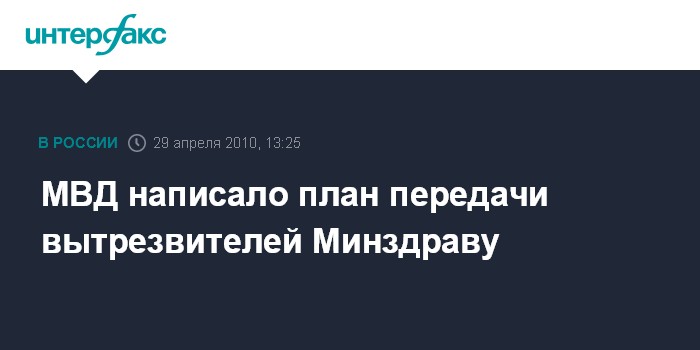 Москва. 29 апреля. ИНТЕРФАКС - МВД адресовало в профильные министерства план передачи медвытрезвителей в ведение органов здравоохранения, заявил министр внутренних дел РФ Рашид Нургалиев.