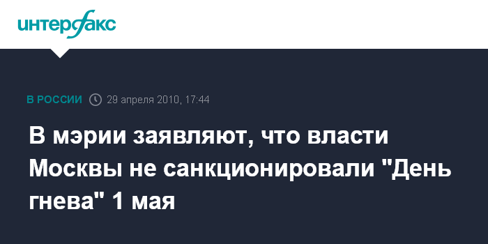 В мэрии заявляют, что власти Москвы не санкционировали "День гнева" 1 мая