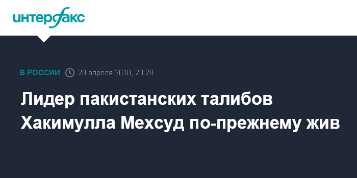 Это заявление противоречит первоначальным сообщениям американских и пакистанских разведывательных служб о том, что Мехсуд был убит в середине января этого года в районе Северного Вазиристана.