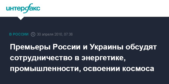 Премьеры России и Украины обсудят сотрудничество в энергетике, промышленности, освоении космоса