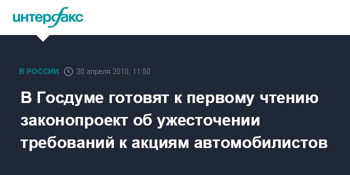 Москва. 30 апреля. INTERFAX.RU - Законопроект, ужесточающий требования к проведению публичных мероприятий с использованием автотранспорта, направлен для подготовки к первому чтению в комитет Госдумы по делам общественных объединений и религиозных организаций. Информация об этом размещена в пятницу в базе данных нижней палаты парламента.