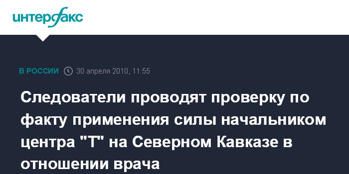 Москва. 30 апреля. INTERFAX.RU – Следственные органы Кабардино-Балкарии проводят процессуальную проверку по факту применения силы начальником центра "Т" на Северном Кавказе Русланом Гитиновым в отношении медика госпиталя МВД.