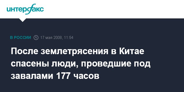 Также, по данным прессы, в субботу днем в уезде Бэйчуань из-под завалов спасены после 177 часов ожидания еще двое мужчин 52 и 69 лет.