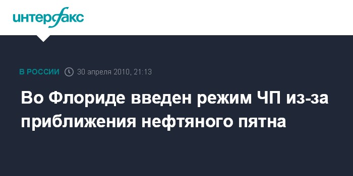 Лондон. 30 апреля. ИНТЕРФАКС - В шести прибрежных округах штата Флорида на юго-востоке США решением губернатора Чарльза Криста в пятницу введен режим чрезвычайного положения, сообщает британская BBC.