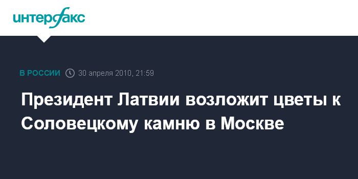 Президент Латвии возложит цветы к Соловецкому камню в Москве