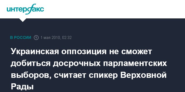 Киев. 1 мая. ИНТЕРФАКС-УКРАИНА - Председатель Верховной Рады Украины Владимир Литвин уверен, что оппозиция не добьется досрочных парламентских выборов.
