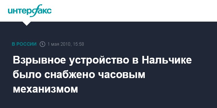 Москва. 1 мая. INTERFAX.RU – На ипподроме Нальчика сработало взрывное устройство с часовым механизмом, сообщает в субботу оперативный штаб в КБР.