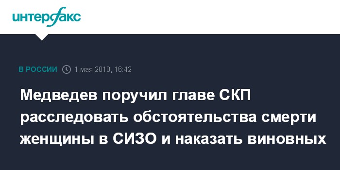Медведев поручил главе СКП расследовать обстоятельства смерти женщины в СИЗО и наказать виновных