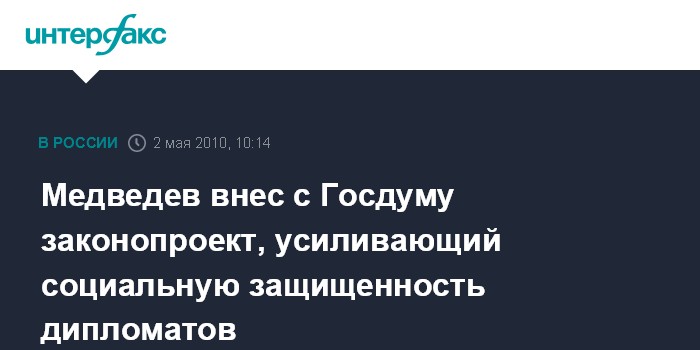 Медведев внес с Госдуму законопроект, усиливающий социальную защищенность дипломатов