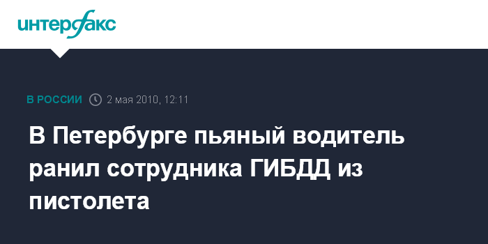 В Петербурге пьяный водитель ранил сотрудника ГИБДД из пистолета