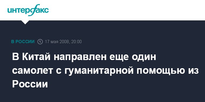 Как сообщает корреспондент "Интерфакса", четвертый самолет с гуманитарной помощью вылетел в провинцию Сычуань с подмосковного аэродрома Раменское примерно в 19:30 мск субботы.