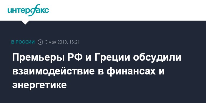 Москва. 3 мая. INTERFAX.RU - Премьер-министры России и Греции Владимир Путин и Георгиос Папандреу в телефонном разговоре в понедельник обсудили текущие вопросы торгово-экономического сотрудничества, включая взаимодействие в финансовой и энергетической сферах. Премьер Греции возобновил свое приглашение В.Путину посетить Грецию с рабочим визитом в удобные для него сроки. Премьеры условились, что точная дата визита будет согласована по дипломатическим каналам, сообщили журналистам в пресс-службе правительства РФ.