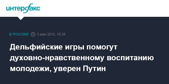 Дельфийские игры помогут духовно-нравственному воспитанию молодежи, уверен Путин