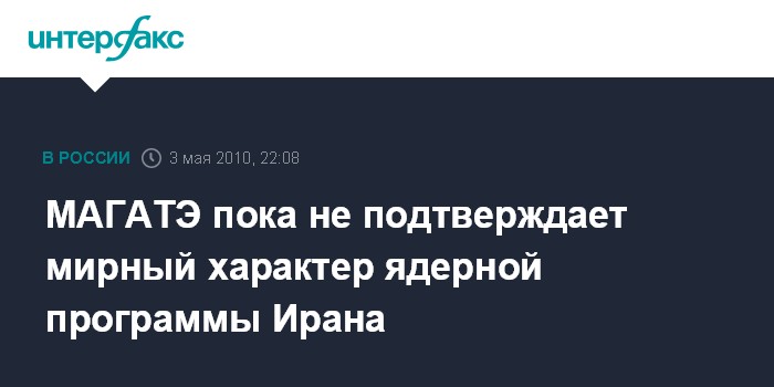 МАГАТЭ пока не подтверждает мирный характер ядерной программы Ирана