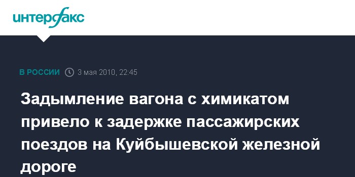 Самара. 3 мая. ИНТЕРФАКС- Задымление вагона с водород-пероксидом произошло в Самарской области в грузовом составе, следовавшем из Нижегородской области в Ташкент.
