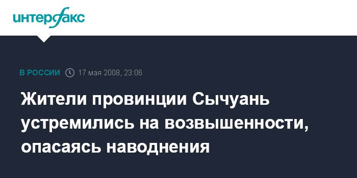 Атланта (США). 17 мая. INTERFAX.RU - Тысячи жителей китайской провинции Сычуань, проживающих неподалеку от эпицентра недавнего разрушительного землетрясения, устремились в горы, опасаясь возможного наводнения.