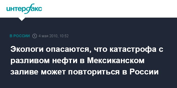 Москва. 4 мая. INTERFAX.RU - Экологи предупреждают о возможном повторении аварии, подобной разливу нефти в Мексиканском разливе, на территории России.