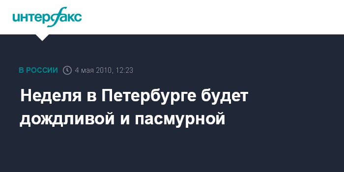 Москва. 4 мая. INTERFAX.RU - Дождливая и пасмурная погода ожидается в Петербурге и Ленинградской области в течение наступившей рабочей недели, сообщили "Интерфаксу" в городском Гидрометцентре во вторник. Температура воздуха в Петербурге в ближайшие дни ожидается не выше плюс 9 градусов, однако ветер, по прогнозам синоптиков, ослабеет.