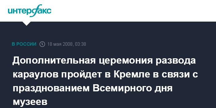 Москва. 18 мая. ИНТЕРФАКС - Дополнительная церемония развода пеших и конных караулов Президентского полка состоится в это воскресенье в 12:00.
