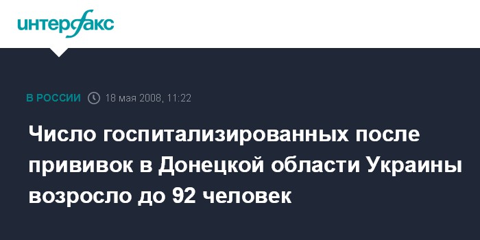 Число госпитализированных после прививок в Донецкой области Украины возросло до 92 человек
