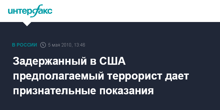 Москва. 5 мая. INTERFAX.RU - Американец пакистанского происхождения Фейсал Шахзад, обвиняемый в причастности к недавней попытке теракта в Нью-Йорке, дает признательные показания, сообщает в среду веб-сайт газеты Washington Post. В частности, он рассказал агентам ФБР, что прошел в Пакистане специальный курс обучения, в ходе которого научился самостоятельно собирать взрывные устройства. Кроме того, 30-летний мужчина признал, что действительно принимал участие в процессе подготовки попытки теракта.