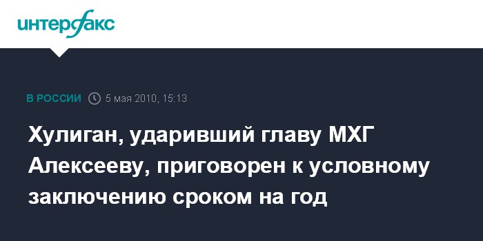Хулиган, ударивший главу МХГ Алексееву, приговорен к условному заключению сроком на год