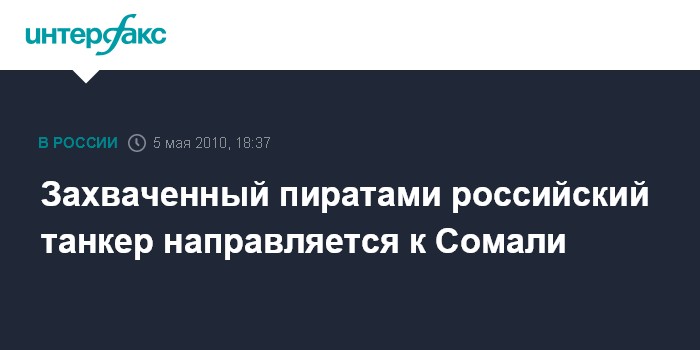 Москва. 5 мая. INTERFAX.RU - Танкер "Московский университет" с 23 россиянами на борту, захваченный в Аденском заливе в среду, направился к берегам Сомали, сообщил представитель коалиционных военно-морских сил в регионе.
