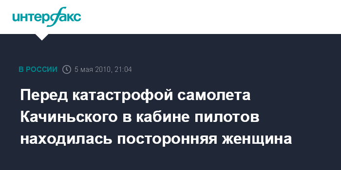 Перед катастрофой самолета Качиньского в кабине пилотов находилась посторонняя женщина