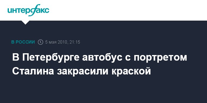 Санкт-Петербург. 5 мая. INTERFAX.RU - Неизвестные закрасили краской автобус с изображением Иосифа Сталина, который вышел в среду на улицы Петербурга, жалуются инициаторы акции.