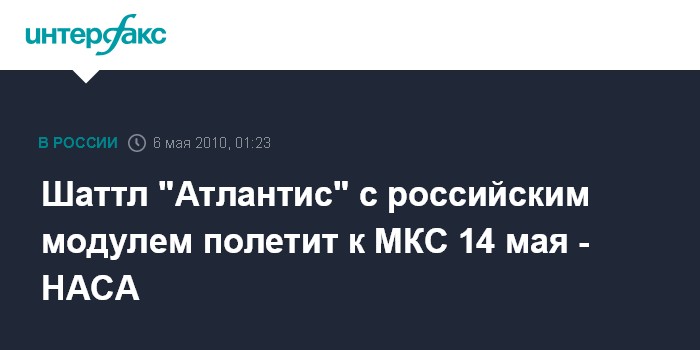 Шаттл "Атлантис" с российским модулем полетит к МКС 14 мая - НАСА