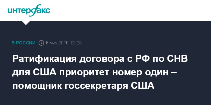 Ратификация договора с РФ по СНВ для США приоритет номер один – помощник госсекретаря США