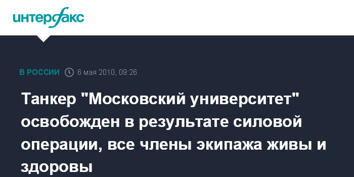 Танкер "Московский университет" освобожден в результате силовой операции, все члены экипажа живы и здоровы