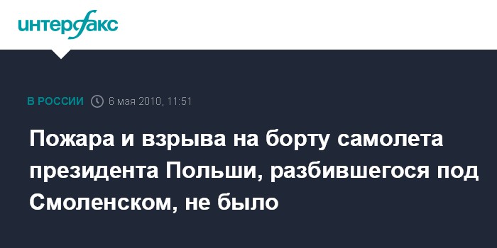 Пожара и взрыва на борту самолета президента Польши, разбившегося под Смоленском, не было