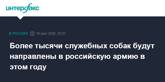 Москва. 18 мая. ИНТЕРФАКС-АВН - Свыше тысячи специалистов-вожатых караульных собак вместе с их питомцами будут подготовлены в 2008 году для службы в армии Методико-кинологическим центром служебного собаководства Вооруженных сил России, сообщил "Интерфаксу-АВН" помощник главкома Сухопутных войск полковник Игорь Конашенков.