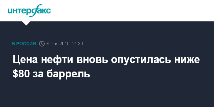 Нью-Йорк. 6 мая. INTERFAX.RU - Цена нефти WTI днем в четверг снова отступила за рубеж в $80 за баррель и может продолжить падение третий день подряд, сообщило агентство Bloomberg.