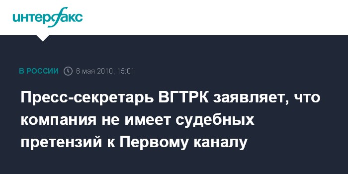 Пресс-секретарь ВГТРК заявляет, что компания не имеет судебных претензий к Первому каналу