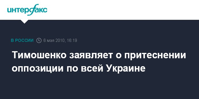 Москва. 6 мая. INTERFAX.RU - Лидер БЮТ Юлия Тимошенко заявляет о притеснении оппозиции во всех регионах Украины. На заседании оппозиционного правительства в четверг в Киеве она заявила, это происходит и в Луганской области, и на Волыни, и в Крыму, и в Виннице. "Тех людей, которые сегодня четко представляют оппозицию, репрессируют", - сказала лидер БЮТ. По ее словам, в этой ситуации становится понятно, что для того, чтобы прикрыть суть государственного бюджета на 2010 г., а, следовательно, и суть политики которую будет проводить президент Украины Виктор Янукович, "необходимо отсутствие свободы, репрессии, нарушение Конституции".