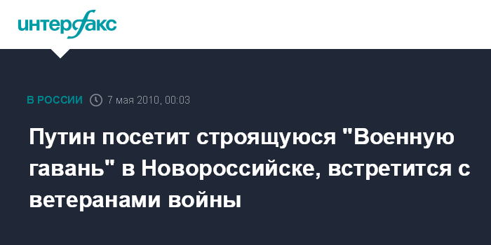 Согласно сообщению, В.Путин посетит строящийся порт "Военная гавань". В соответствии с Федеральной целевой программой "Создание системы базирования Черноморского флота на территории Российской Федерации в 2005-2020 годах" в Новороссийске идет сооружение пункта базирования кораблей и судов Черноморского флота. Основным объектом пункта базирования станет Геопорт с оградительным молом общей протяженностью 2570 метров.