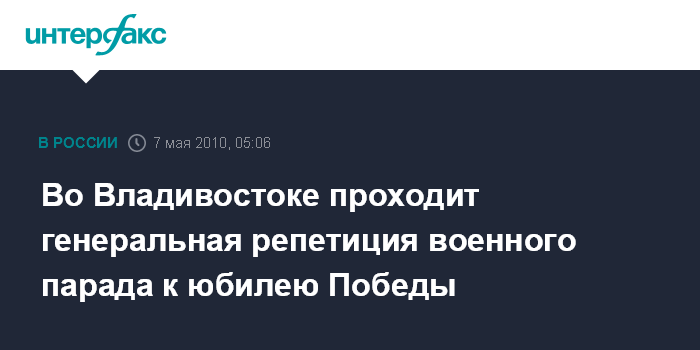 Как сообщалось ранее, парад Победы во Владивостоке пройдет на площади Борцов за власть советов 9 мая 2010 года. Начнется он в 17:00 по местному времени (10:00 мск), одновременно с парадом на Красной площади в Москве.